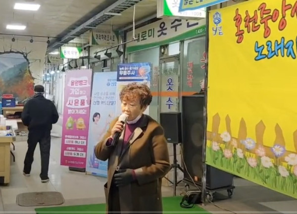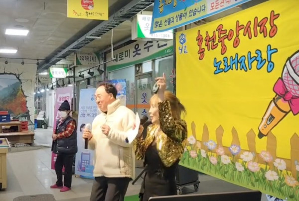 2023년 11월 24일(금) 오후3시부터 6시까지 홍천중앙시장에서 신협과 새마을금고가 후원으로 진행하는 노래자랑이 있었습니다.